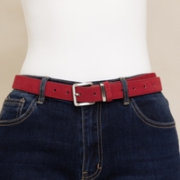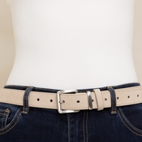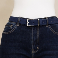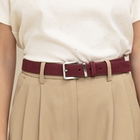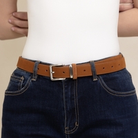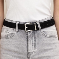 חגורת עור זמש קלאסית ויפה עם אבזם מלבני כסוף