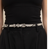 חגורת עור בדוגמת מנוחש דקה ואלגנטית קיימת בשלושה גוונים מיוחדים.