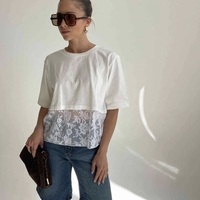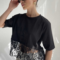 חולצה בסגנון אוברסייז מבד רוגבי משולב תחרה.